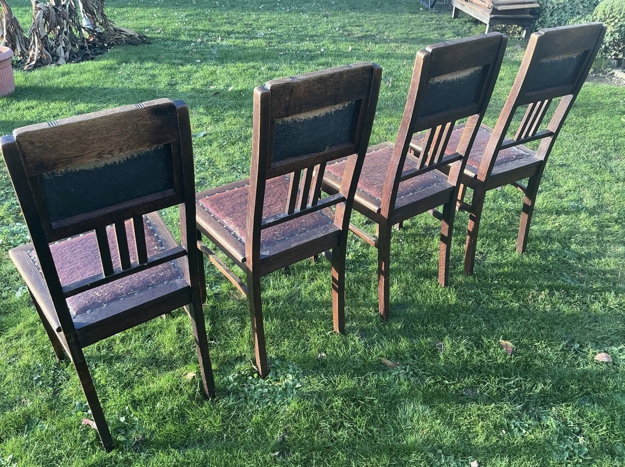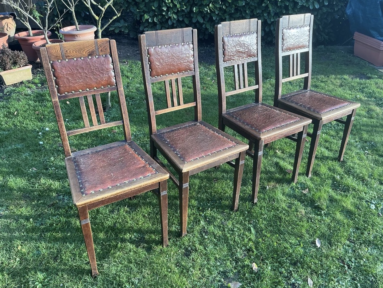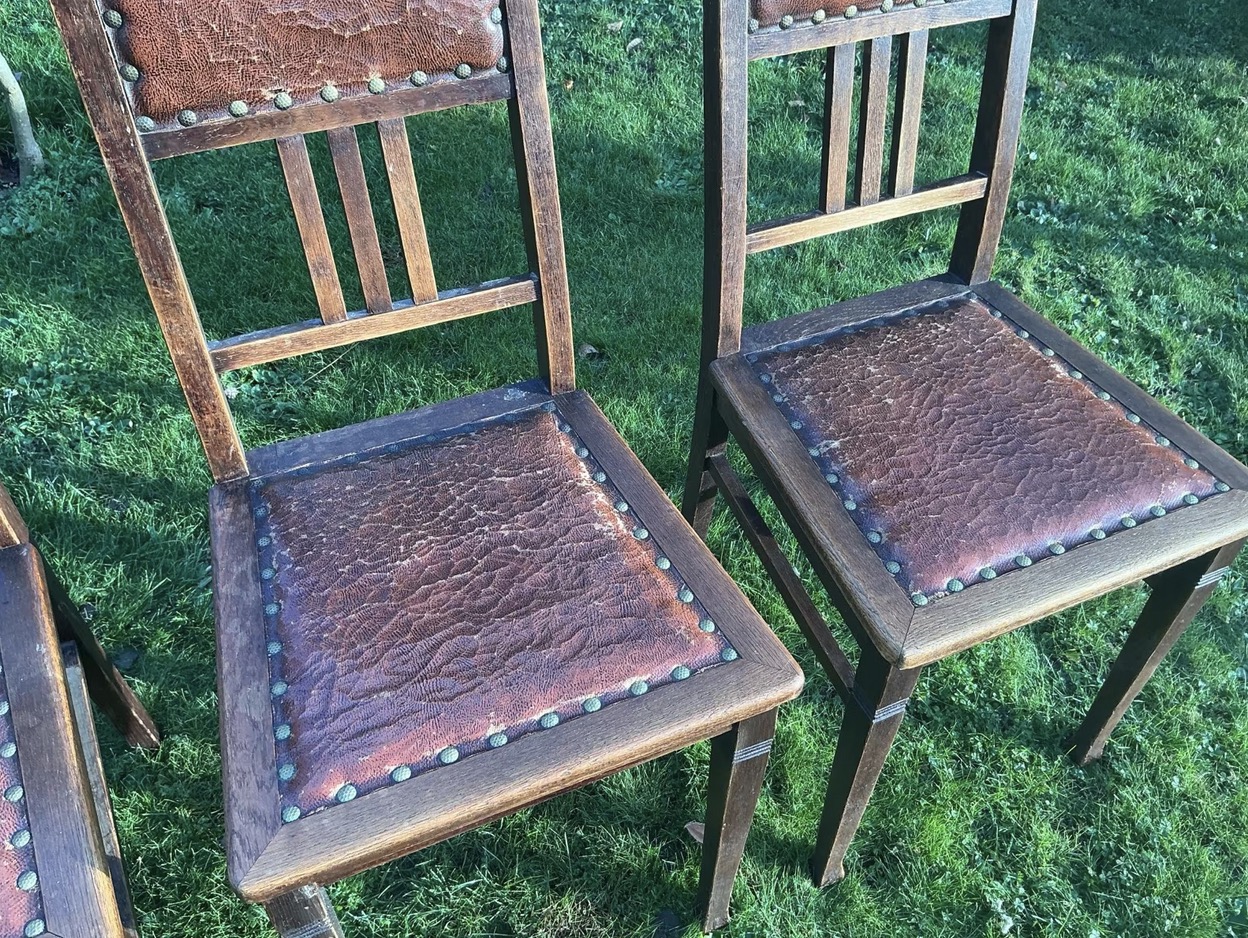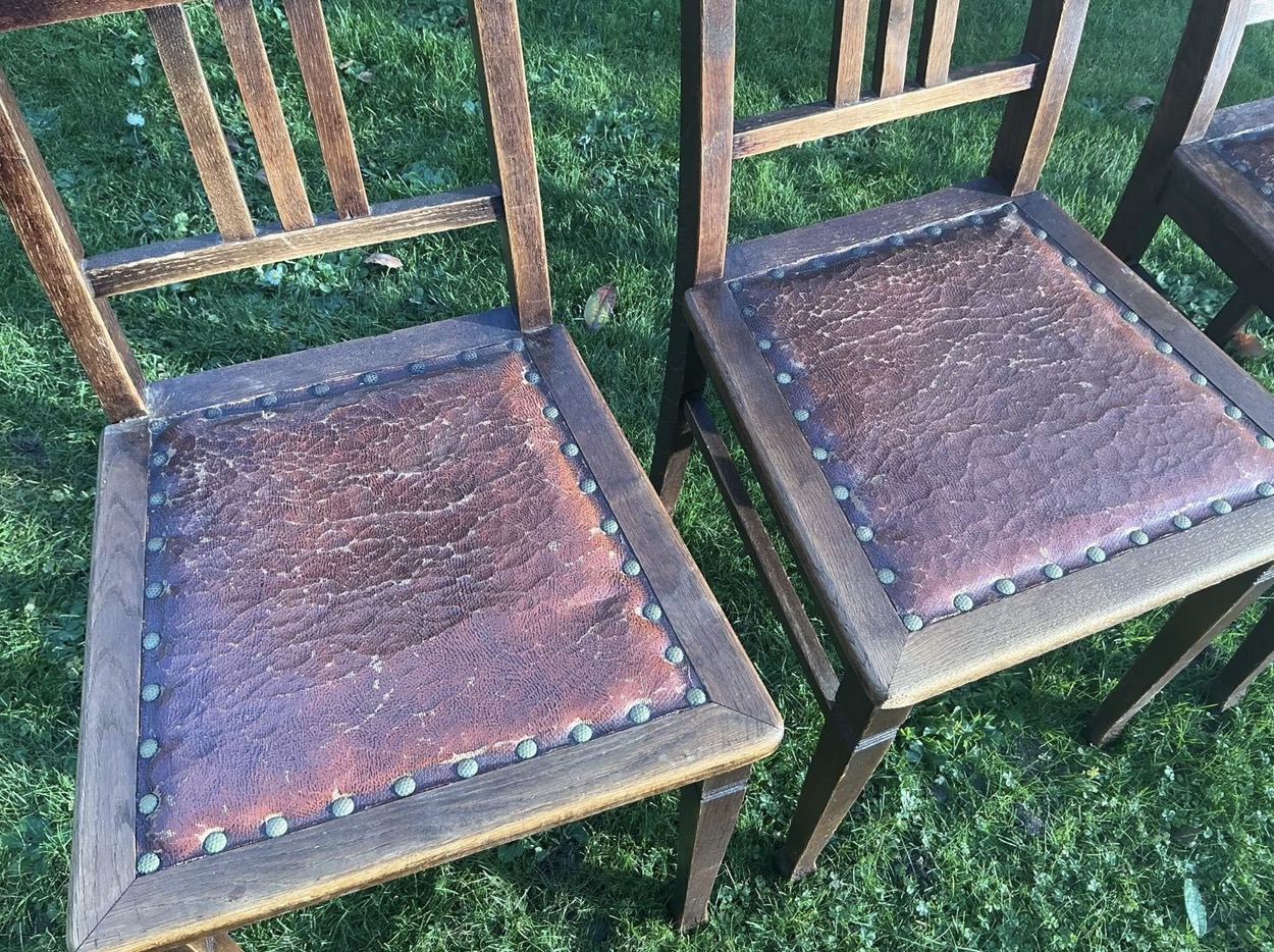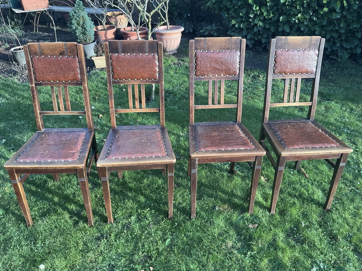4 antike Stühle, Esszimmerstühle (Jugendstil, Holz/Leder, Antiquität)