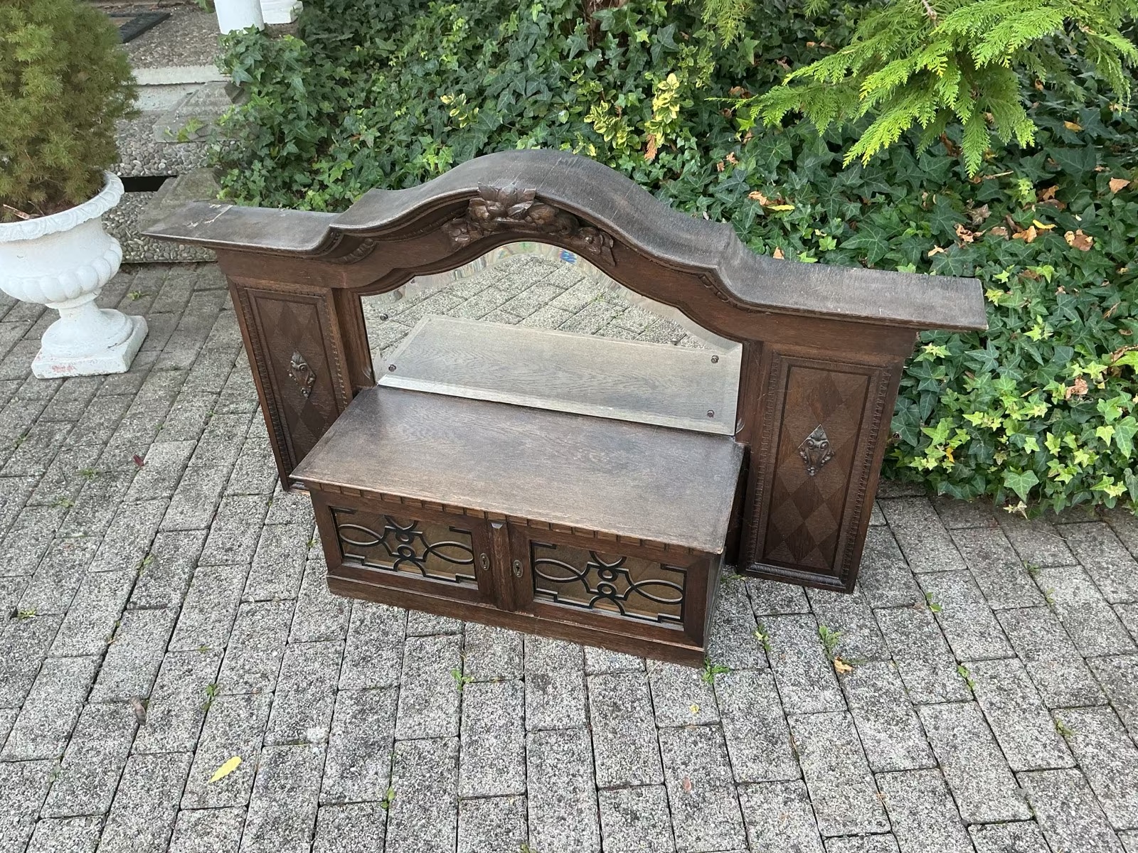 Antiker Buffetausatz mit Spiegel, Holzschrank (Antiquität)