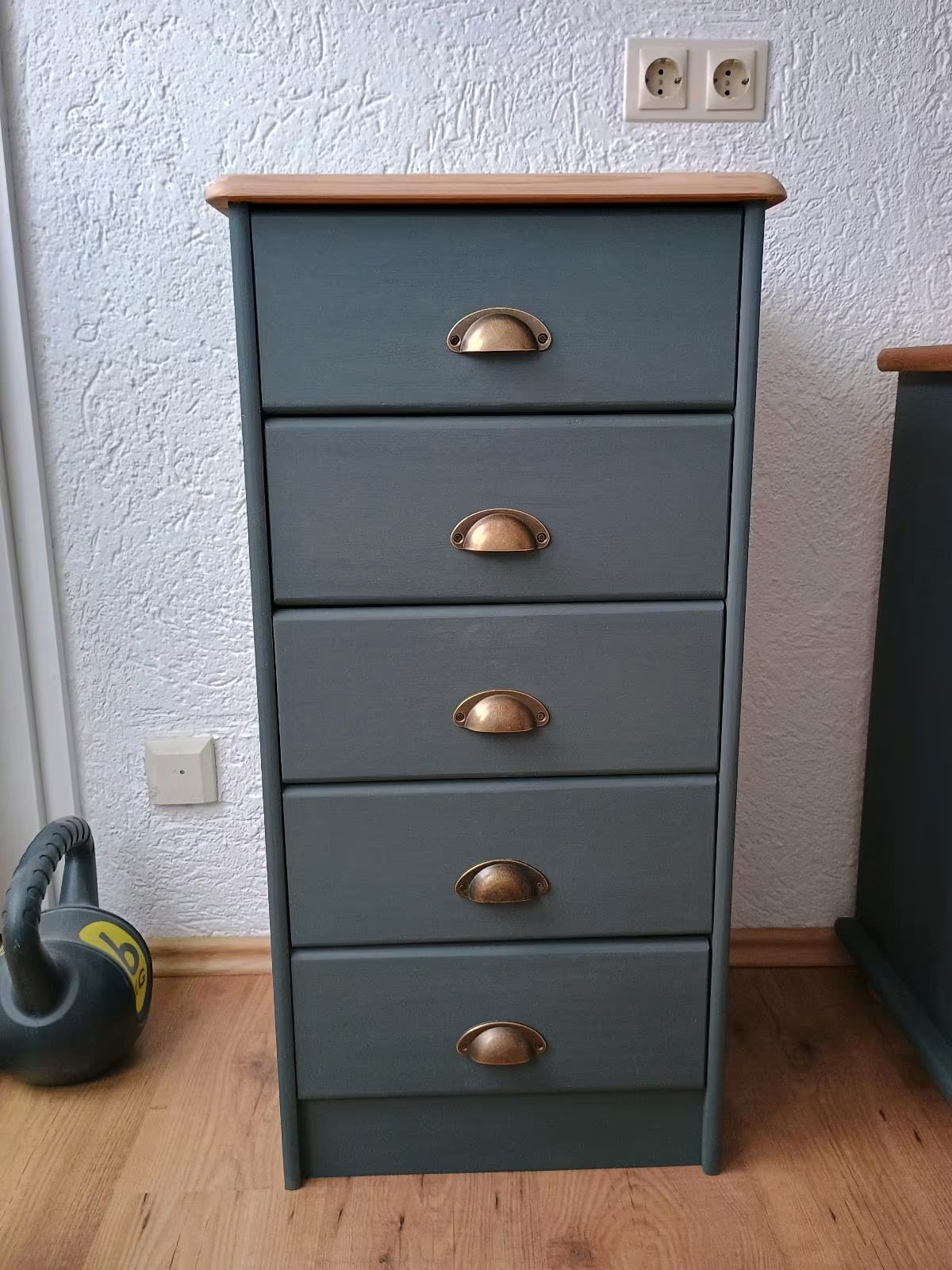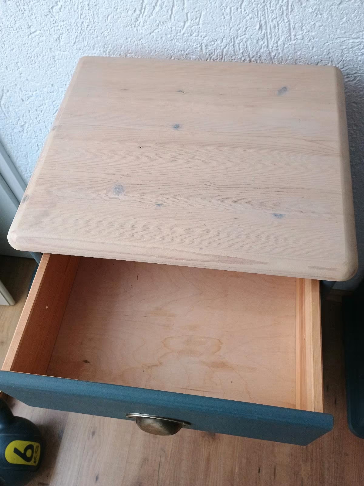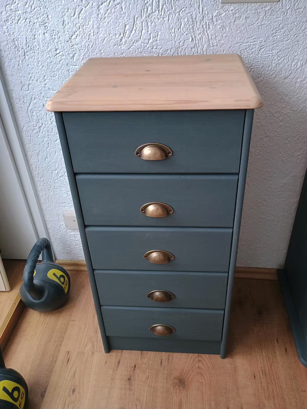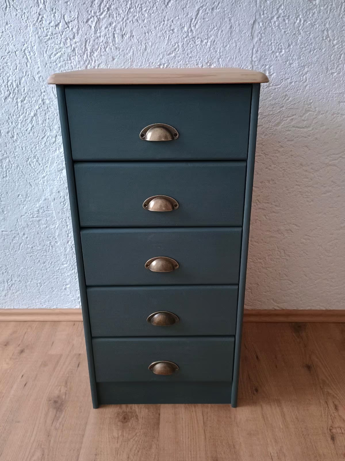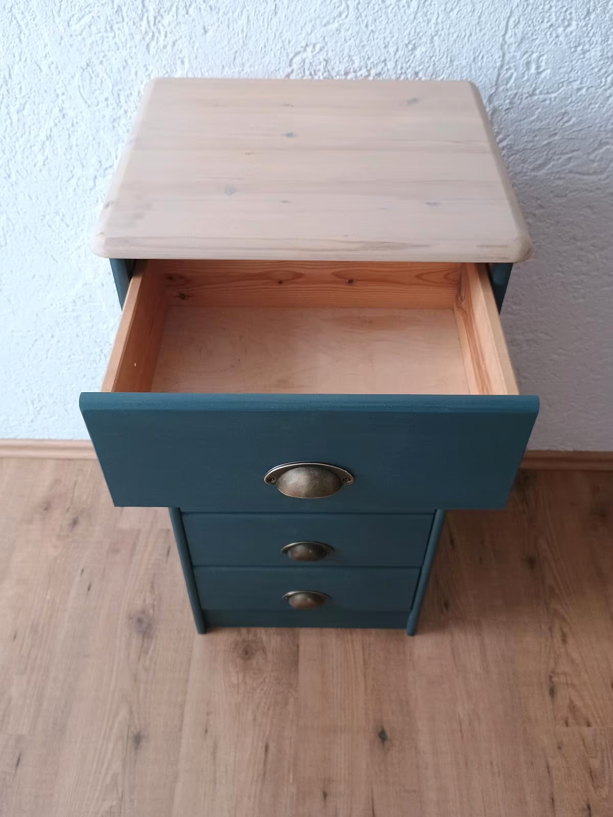 Das Schränkchen wurde abgeschliffen, neu lackiert und mit Bienenwachs versiegelt.