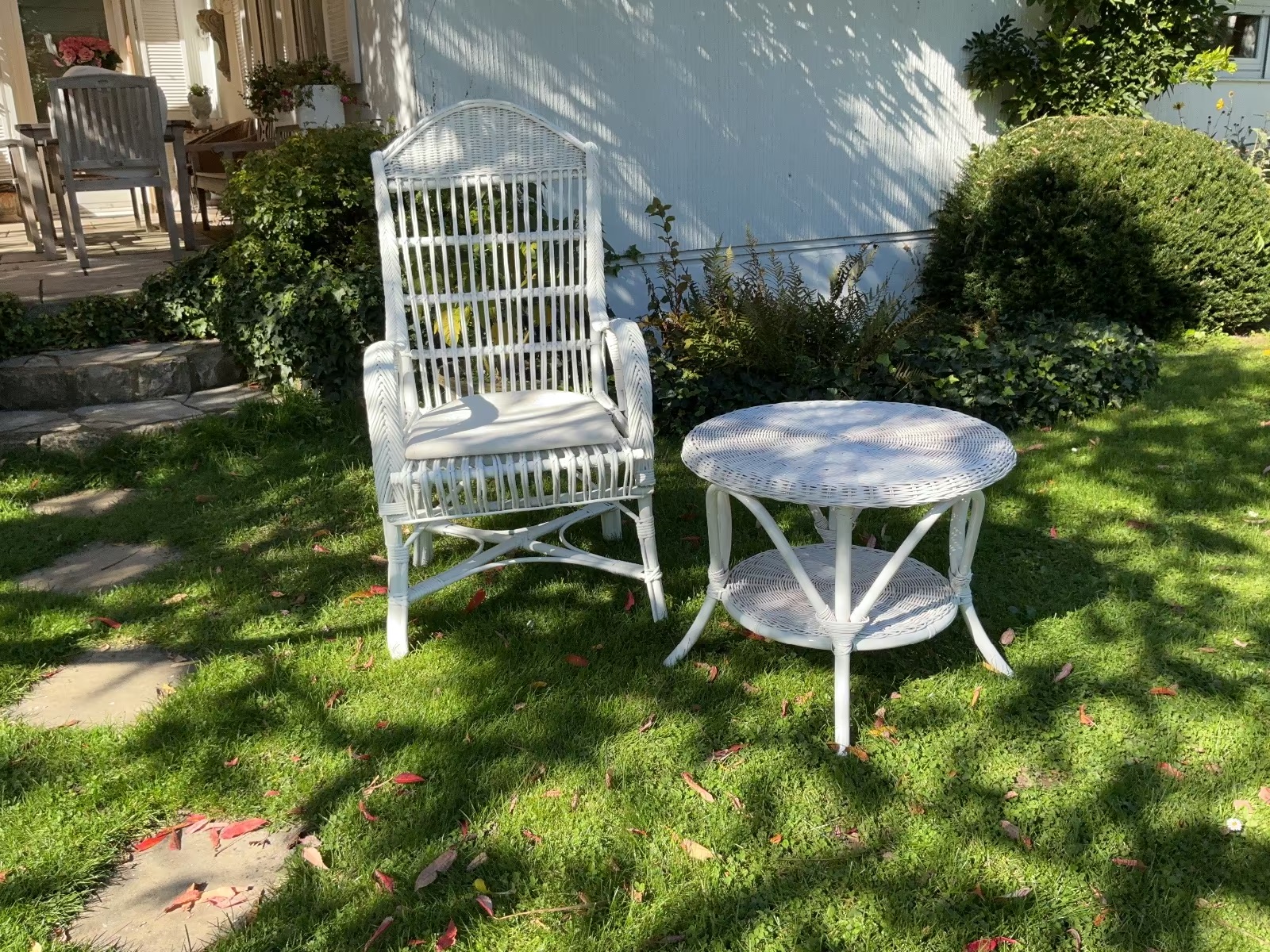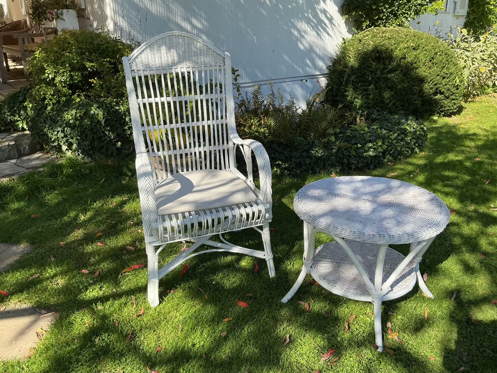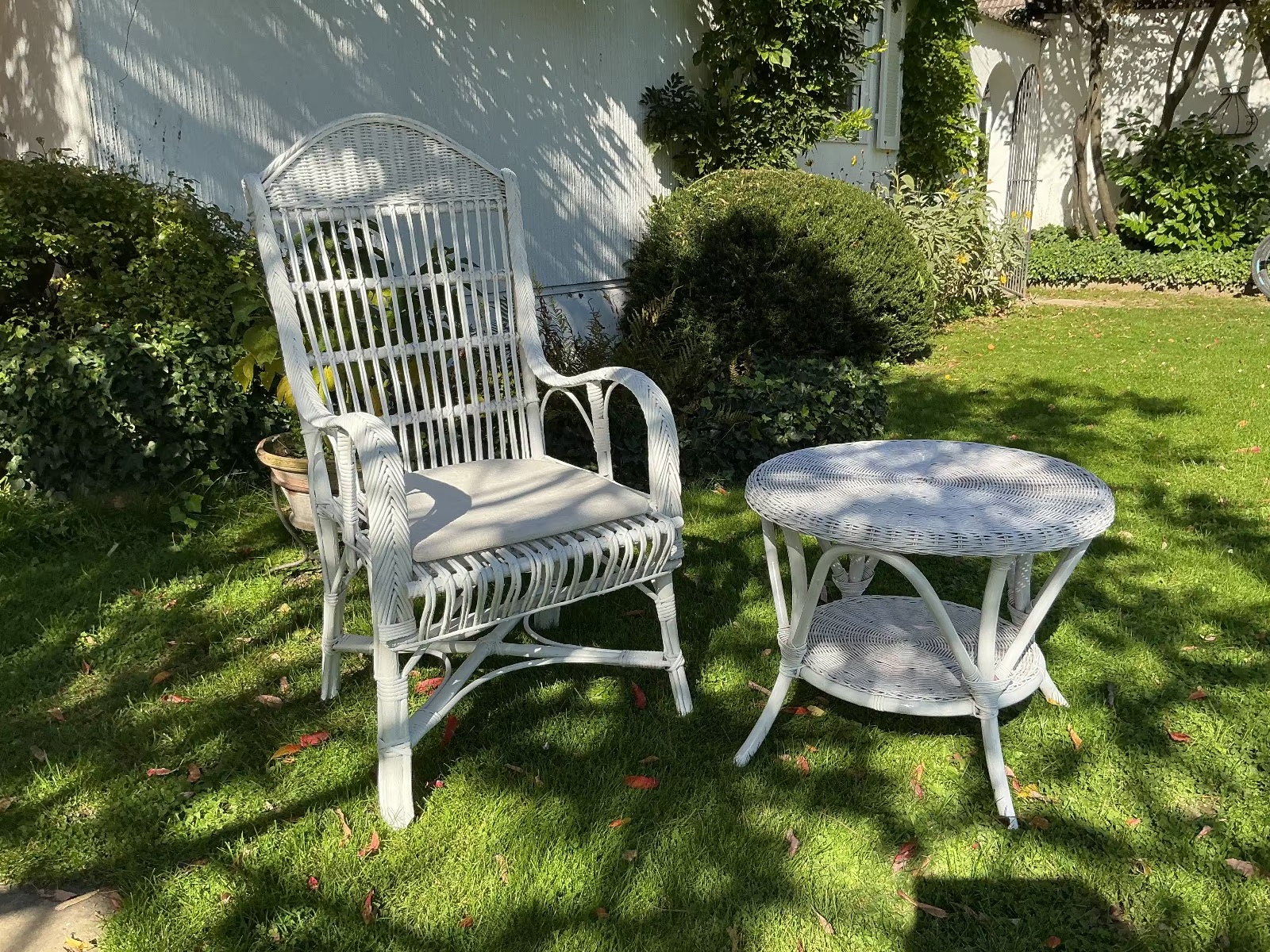 Sessel & Beistelltisch, Rattanmöbel, Wintergarten (Landhausstil, Shabby)