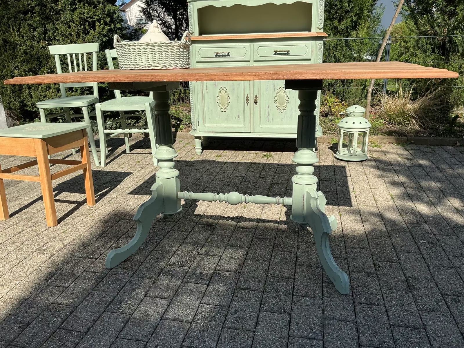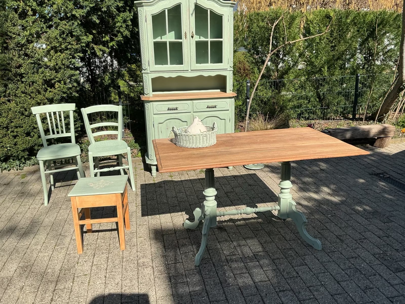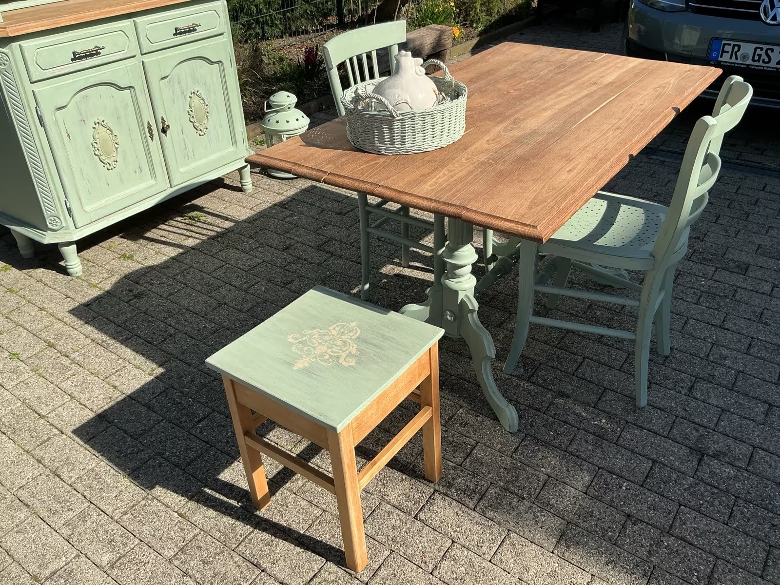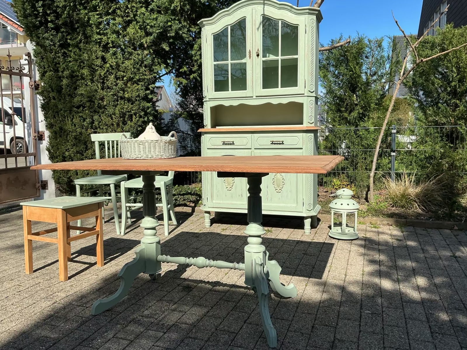 Die Möbel und frisch Aloe-Vera-farben gestrichen und mit Bienenwachs versiegelt.