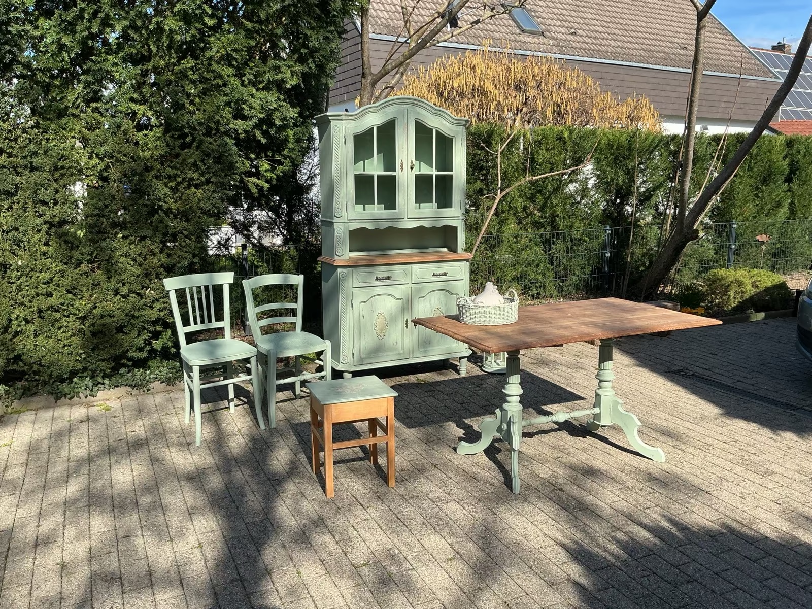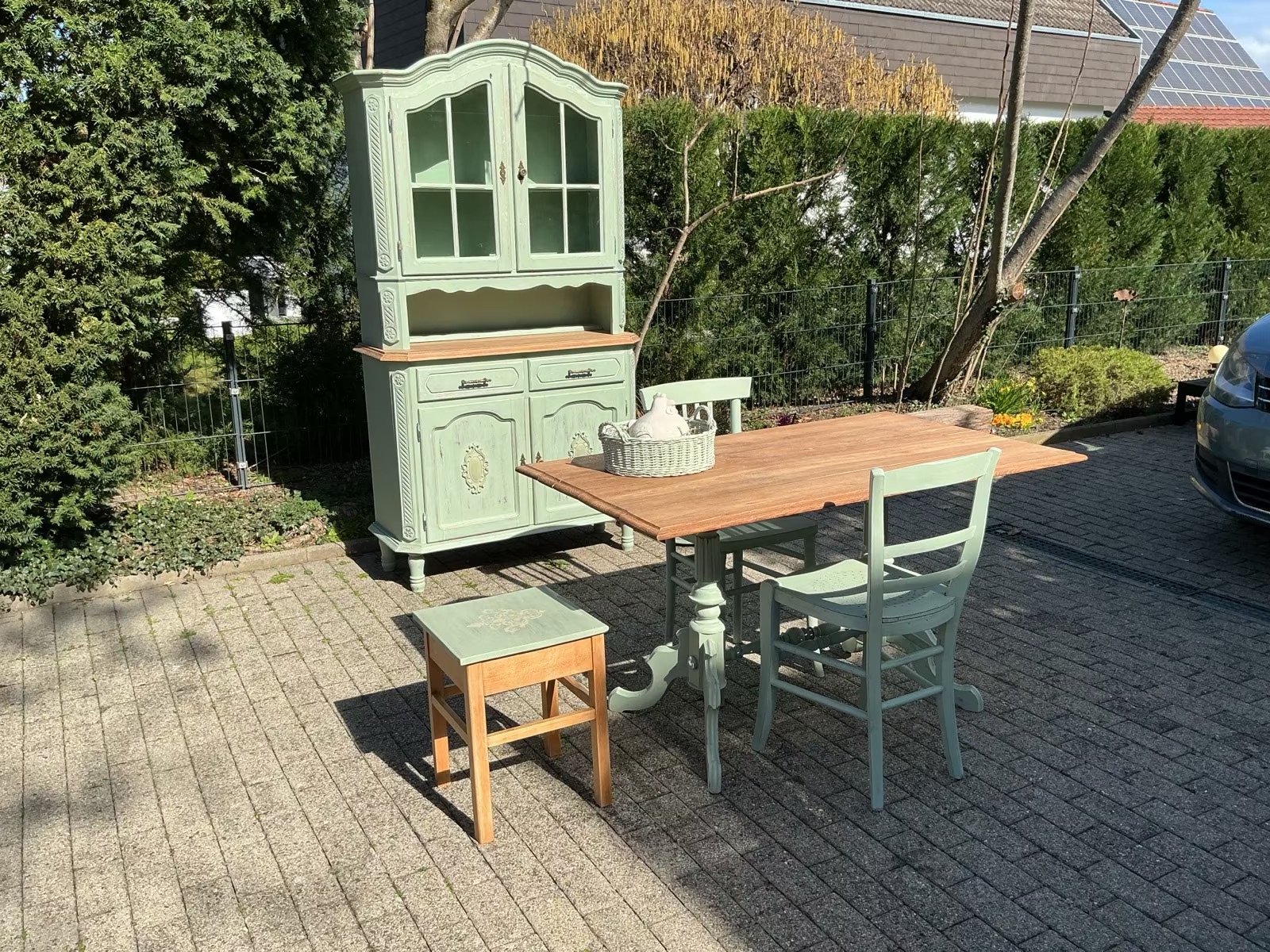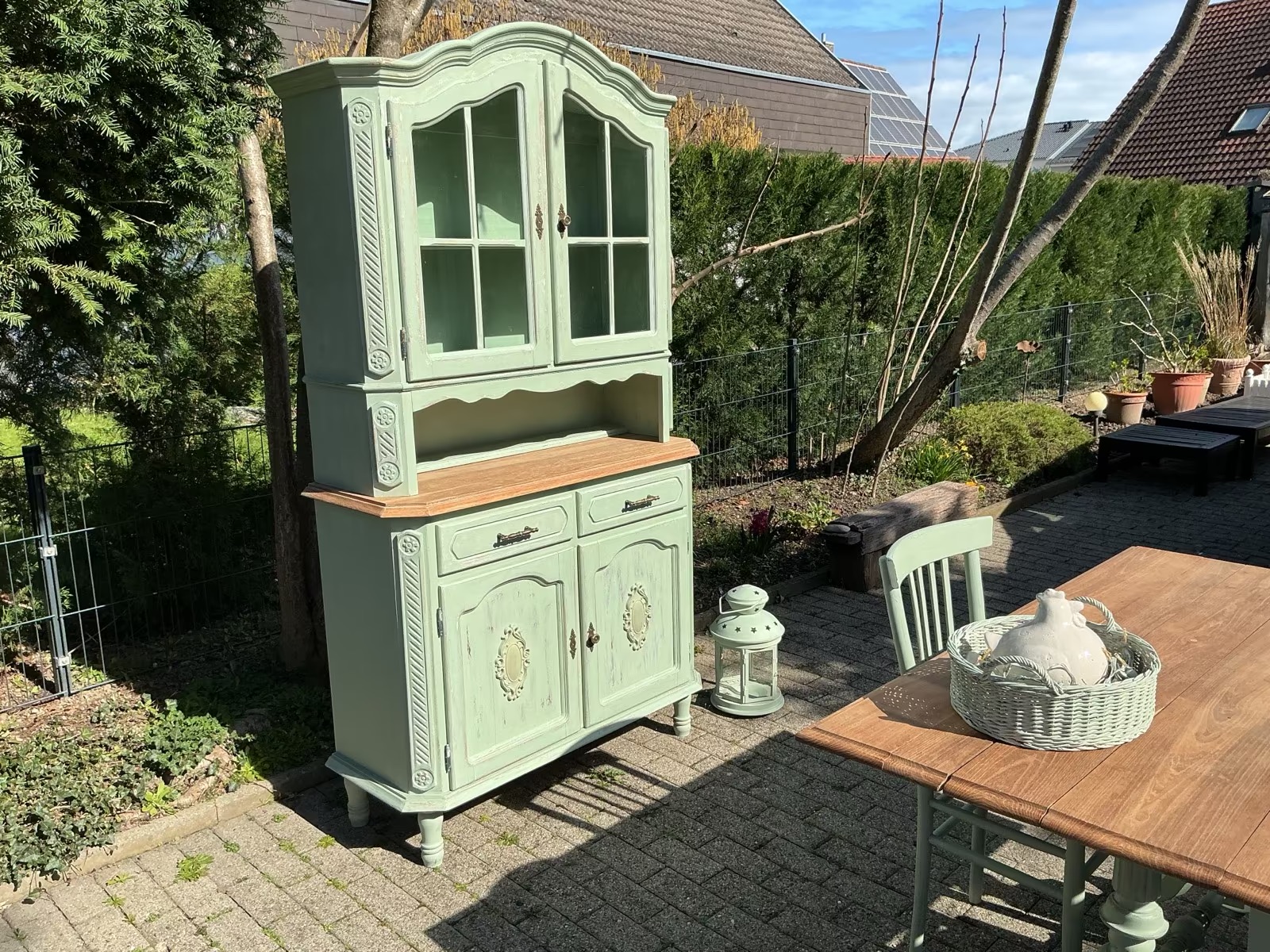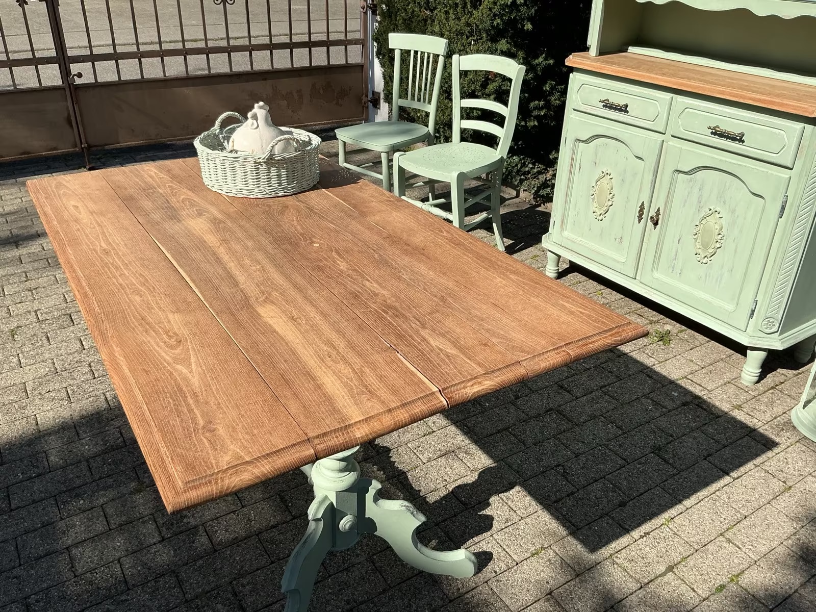 Die Möbel und frisch Aloe-Vera-farben gestrichen und mit Bienenwachs versiegelt.