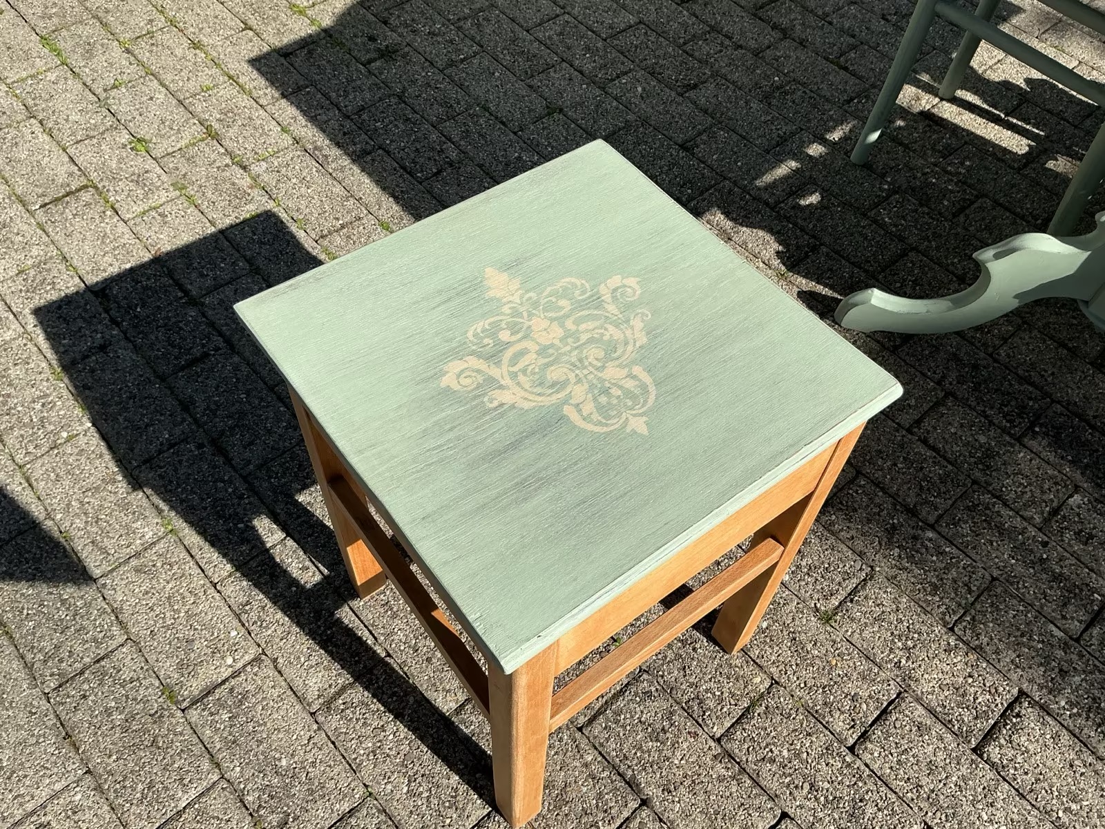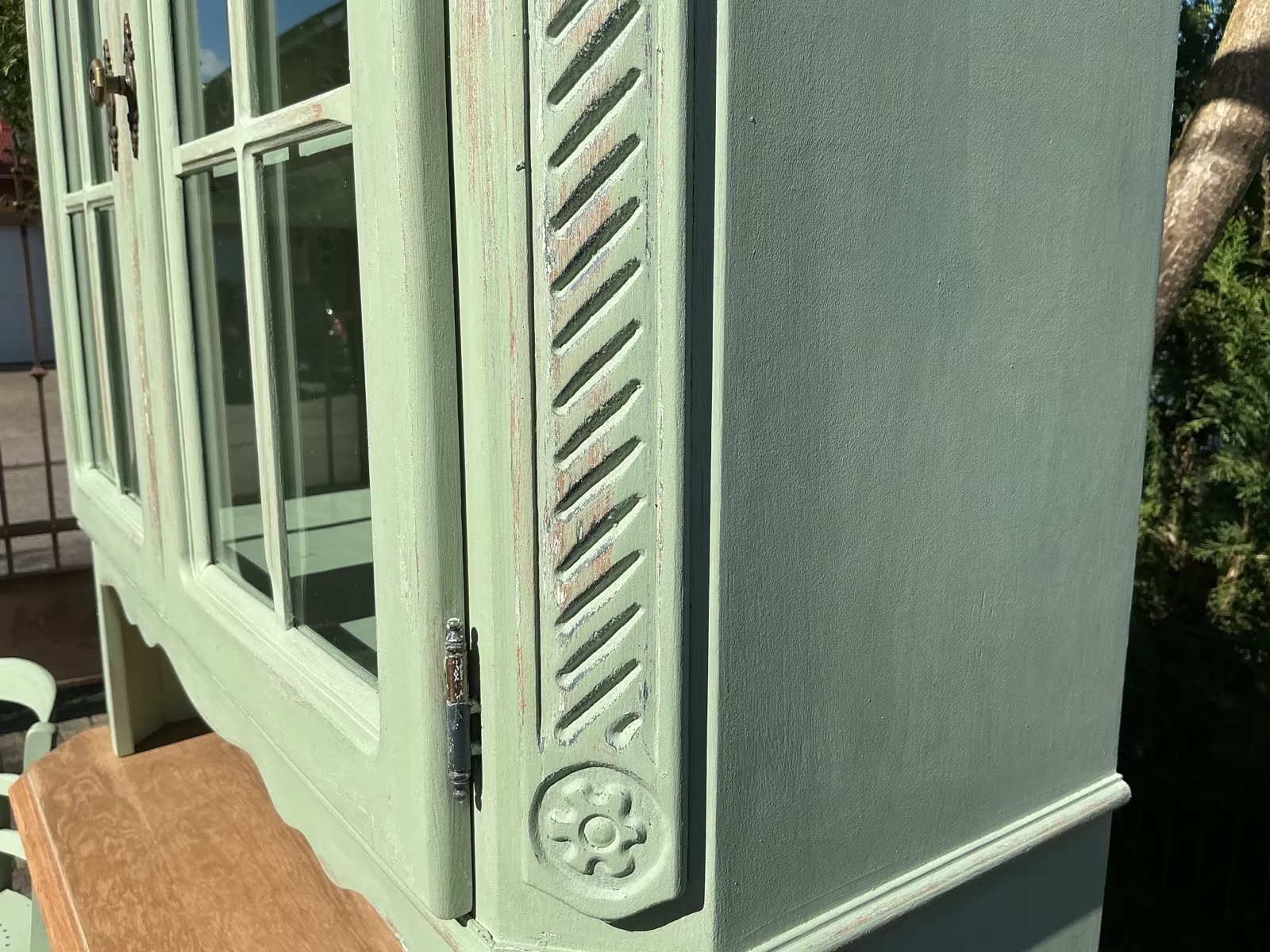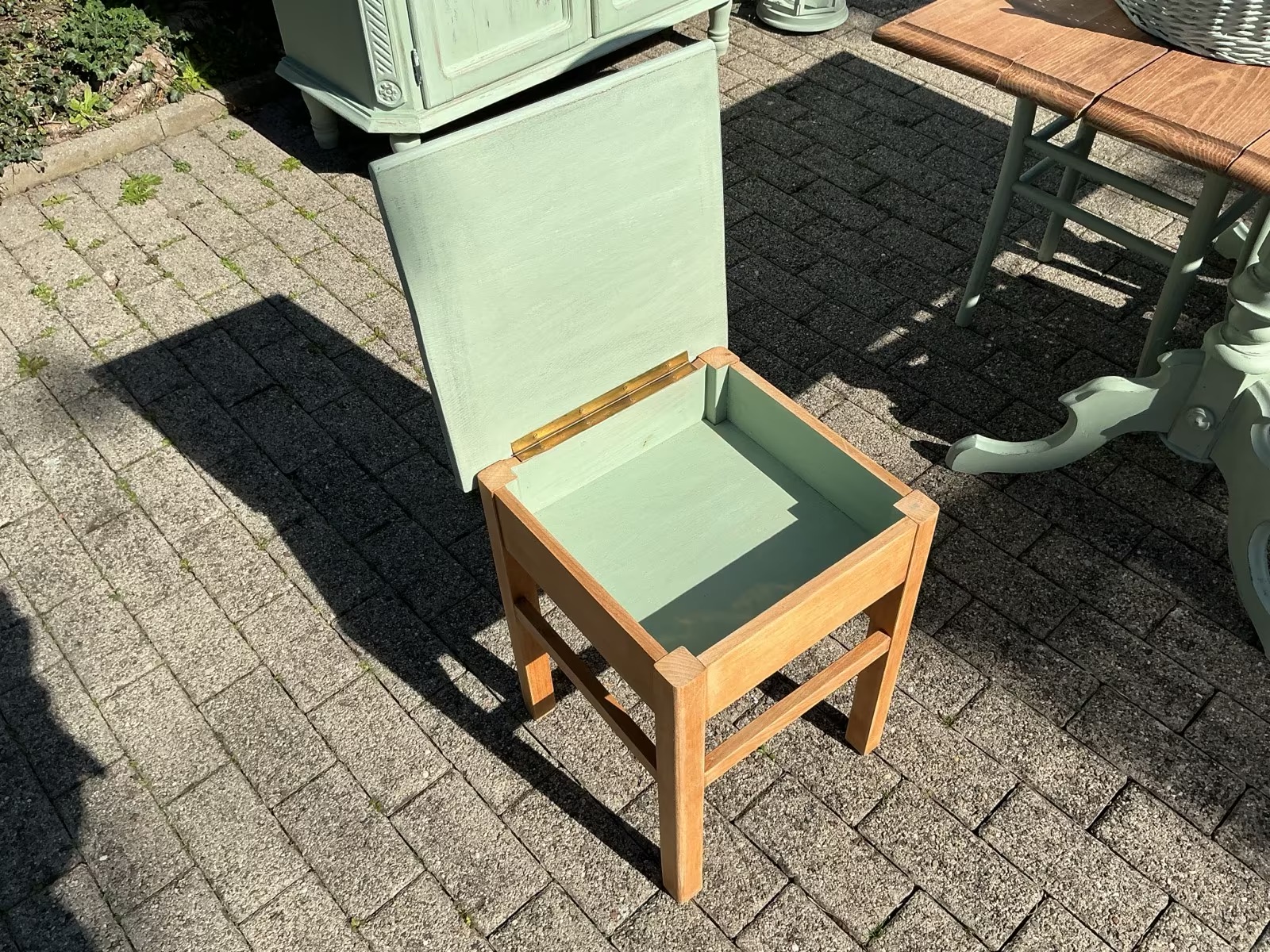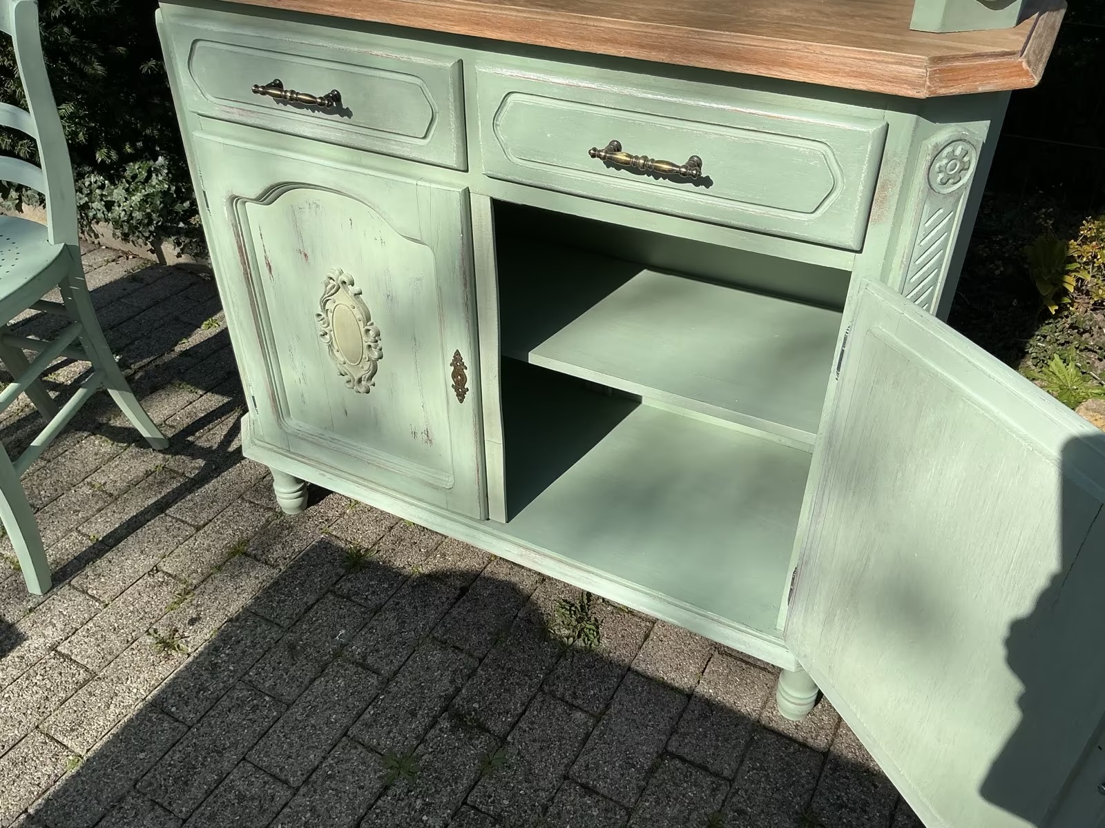 Die Möbel und frisch Aloe-Vera-farben gestrichen und mit Bienenwachs versiegelt.